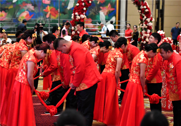 作为本届论坛的配套活动,6月17日,百位两岸新人在厦门举行集体婚礼,共同体验闽南婚俗。中新社