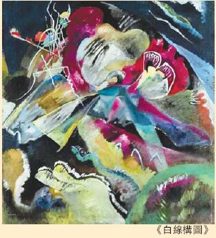《白線構圖》是康丁斯基1913年創作中最重要的作品之一,與《構圖VI》及《構圖VII》出自同一年。作品既是「絕對抽象」的代表作,又可謂一幅獨一無二的特別構圖。此時期內,康丁斯基從音樂作曲中得到靈感---他認定每種顏色都代表一種特定的情感或「聲音」。