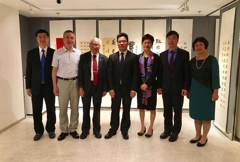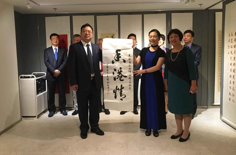 寧波市副市長李關定,寧波市僑辦主任顧正為,鄞州區委常委、統戰部長李虹,香港寧興公司董事長陳志昂、副董事長范海波,香港鄞州同鄉會會長應炳囡,香港書法愛好者協會主席余寄撫共同主持剪綵儀式。