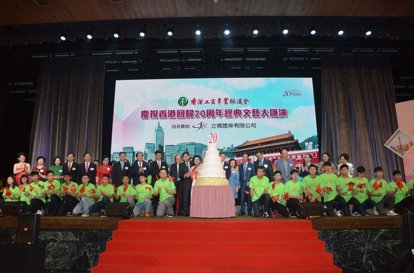 【香港商報网訊】記者霄虹報道:由香港工商專業協進會主辦、立橋證券有限公司冠名贊助的「慶祝香港回歸20周年經典文藝大匯演」,昨日假灣仔會展中心新翼3樓大會堂隆重舉行,食物及衛生局局長高永文、廉政公署專員白韞六、該會首席會長戴德豐等蒞臨主禮,場面盛大。該會主席兼大會策劃人朱蓮芬致辭說,在慶祝回歸20周年如此有意義的日子,官民同樂共慶,以經典文藝匯演彰顯大家對回歸祖國歡欣喜悅的心情。三千餘人入場欣賞這台精心策劃的節目,精采的演出引來陣陣熱烈的掌聲,令人回味不已。