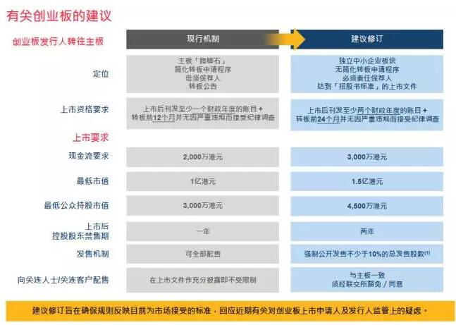 同時改革創業板,遏制不法行為。近幾年,香港創業板公司,上市後股價大幅波動的情況,屢屢發生。港交所修改《創業板規則》和《主板規則》一方面收緊創業板轉主板的要求,另一方面進一步區分主板和創業板的定位。