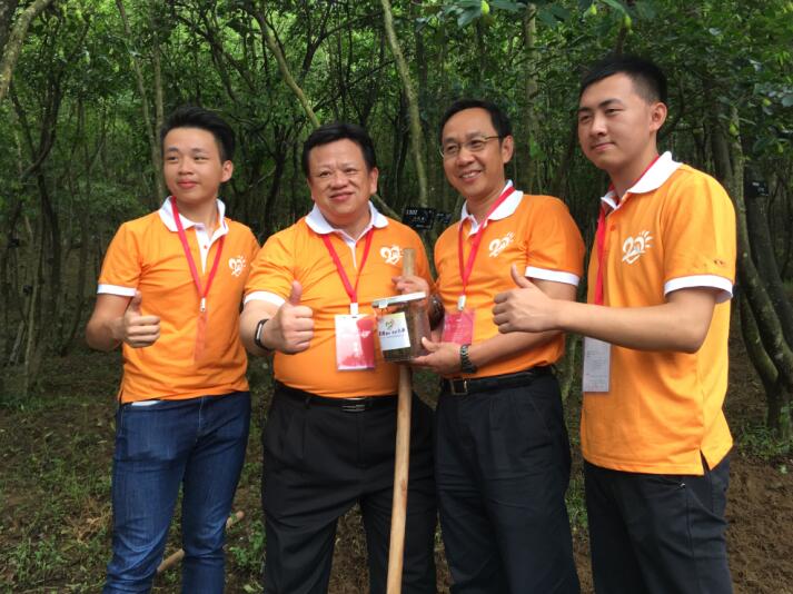 香港青年交流促进联会创会主席龙子明与儿子龙允浩(左二、左一)一起参加植树活动