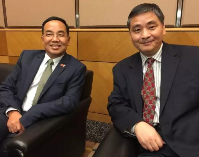 中聯辦宣傳文體部副部長李海堂先生(左)與本報總經理張介嶺先生相見甚歡