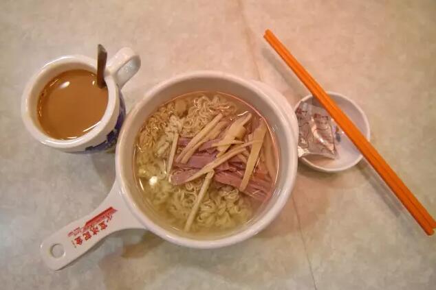 “出前一丁”是香港茶餐廳里不可少的元素之一,“出前一丁”是方便面品牌。煮方便面在香港被玩出了花樣,茶餐廳的“一丁”會靈活搭配上美國的煎雞扒、中國的鹵水豉油和油浸姜蔥、馬來西亞的沙爹汁等等,成為香港的獨有美食“撈丁”。