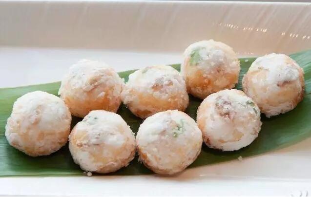 鮑魚雞粒酥是陳恩德的拿手菜。這是一道點心,頂層是鮑魚,中間是雞粒,下面是蛋撻的餅皮。他說,鮑魚雞粒酥中的鮑魚由南非進口,上面澆了由火腿、老雞和鮑魚熬成的湯汁,非常入味。