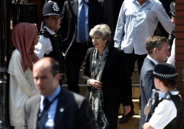恐襲發生后,英國首相文翠珊探訪芬斯伯里公園附近的清真寺。路透社