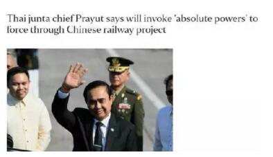 《曼谷郵報》此前14日報道稱,泰國總理府發言人訕森向媒體透露,副總理威沙努正在加緊制定根據憲法44條的命令內容,其中將涉及阻礙中泰鐵路計劃推進的“5個法律問題”。