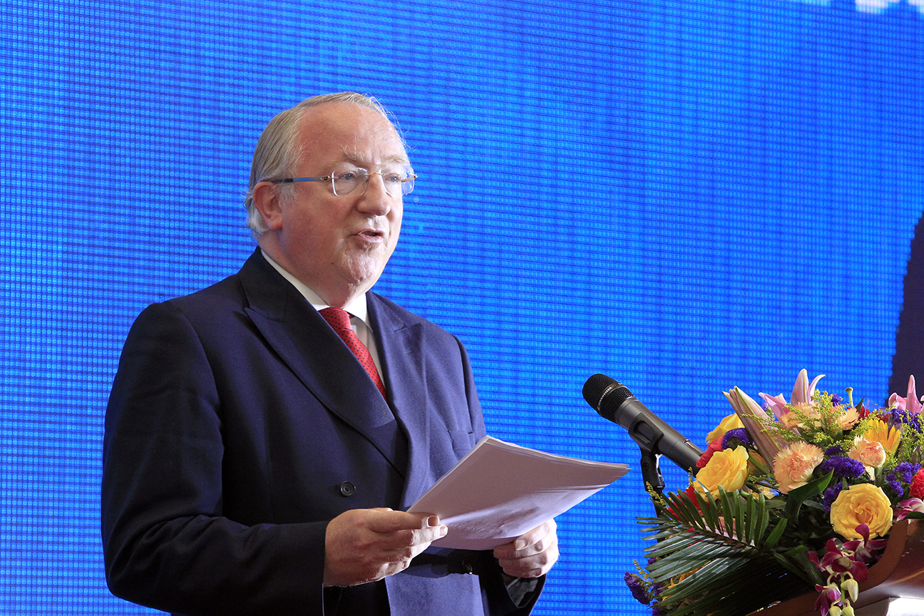 世界自由貿易區協會主席Graham Mather演講中。