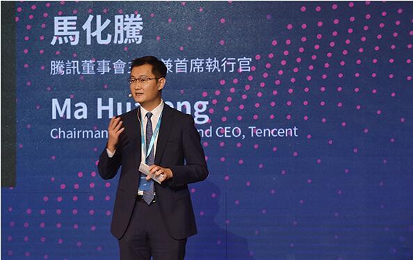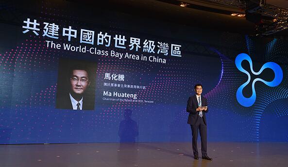 騰訊集團董事會主席馬化騰在香港首屆“粵港澳大灣區論壇”上發表演講。