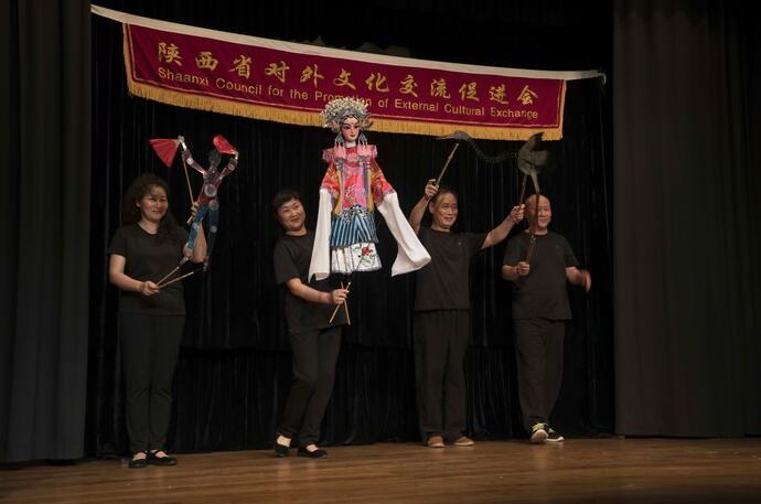 精彩的陝西皮影木偶表演受到斯民眾的熱烈歡迎