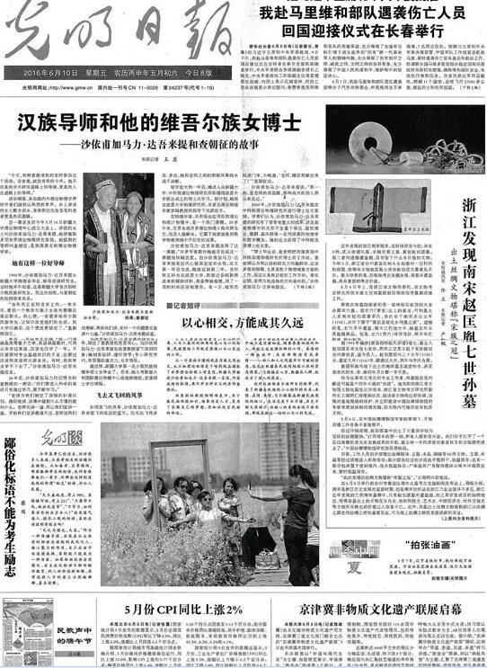 【简介】版面图片使用方式新颖多样,视觉冲击力强。精心设计版面布局,排版错落有致。认真编辑每篇稿件,确保质量,兼顾政治性、新闻性和艺术性的统一,突出了光明日报的特色。标题准确生动,各个标题的字号大小对比有层次感。稿件内容较丰富,涉及考古、经济、文化,篇幅长短搭配,主次分明,可读性较强,文章与图片大小适中,布局精致,非整非碎,有文化味道。