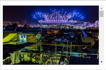 【作品简介】本组作品取材于里约奥运会开幕式的外围报道,其视角图文并茂,不仅按要求拍摄了烟花等气氛照片,而且也向读者介绍了巴西贫民窟的生活情景,反映出巴西贫民窟的居民十分好客的主体形象,从正面报道了巴西贫民窟的现状,并不是像外界所传的那样,巴西贫民窟是“魔鬼”之地。