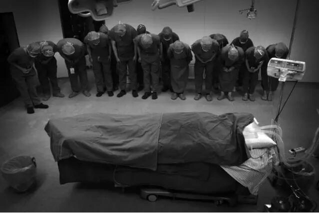 【推荐理由】该单照属于事件性报道,作品反映了医生对死者(遗体捐献者)的尊重与敬畏!在医患关系紧张的今天,该报道客观地反映医生尊重生命的行为,有利于修复受损的医患关系,为了维护社会稳定,必须树立良好的医生形象。