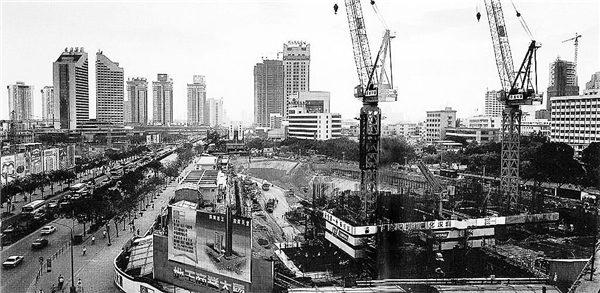 图片说明:1995年地王大厦工地开工时的情景