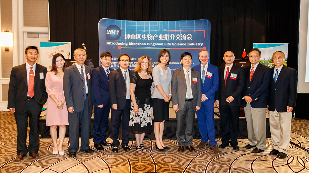 此次由坪山區生物企業交流考察團由坪山區委書記呂玉印率隊,考察團包括萬樂藥業、華因康基因、理邦精密儀器等生物企業。聖地亞哥市國際事務理事會主席Bruce Abrams、副主席Kathleen Charla,深圳市駐北美代表戴靜、美中生物醫學和制藥專業協會會長Stephanie Shi,南加州香港商會會長Angela Ho以及美國當地近100家生物企業的董事長、總裁或企業負責人參加了此次交流會。