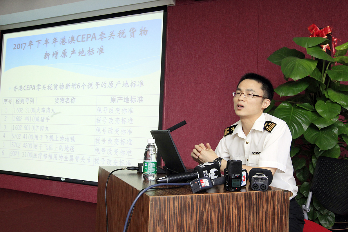 據海關總署拱北原產地管理辦公室主任鄧偉光介紹,按照CEPA補充協議二規定,每半年由海關總署牽頭,中國相關部委共同參與,分別與香港、澳門有關部門進行CEPA零關稅貨物原產地標准磋商。截至目前,澳門CEPA項下已完成本次磋商原產地標准,享受零關稅稅號已增加至1527個;香港CEPA項下稅號已增加至1894個。