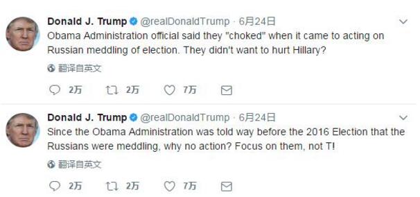 特朗普23日在接受福克斯新聞采訪時說:“我今天第一次聽說奧巴馬在大選前很長一段時間就了解俄羅斯干預大選,然而他卻什么也沒有做。但沒有人愿意談論這一點。”特朗普說:“問題是,如果他知道了,為什么不做點什么呢?他應該做點什么的。但你從文章中沒有讀到這部分內容,這令人失望。”