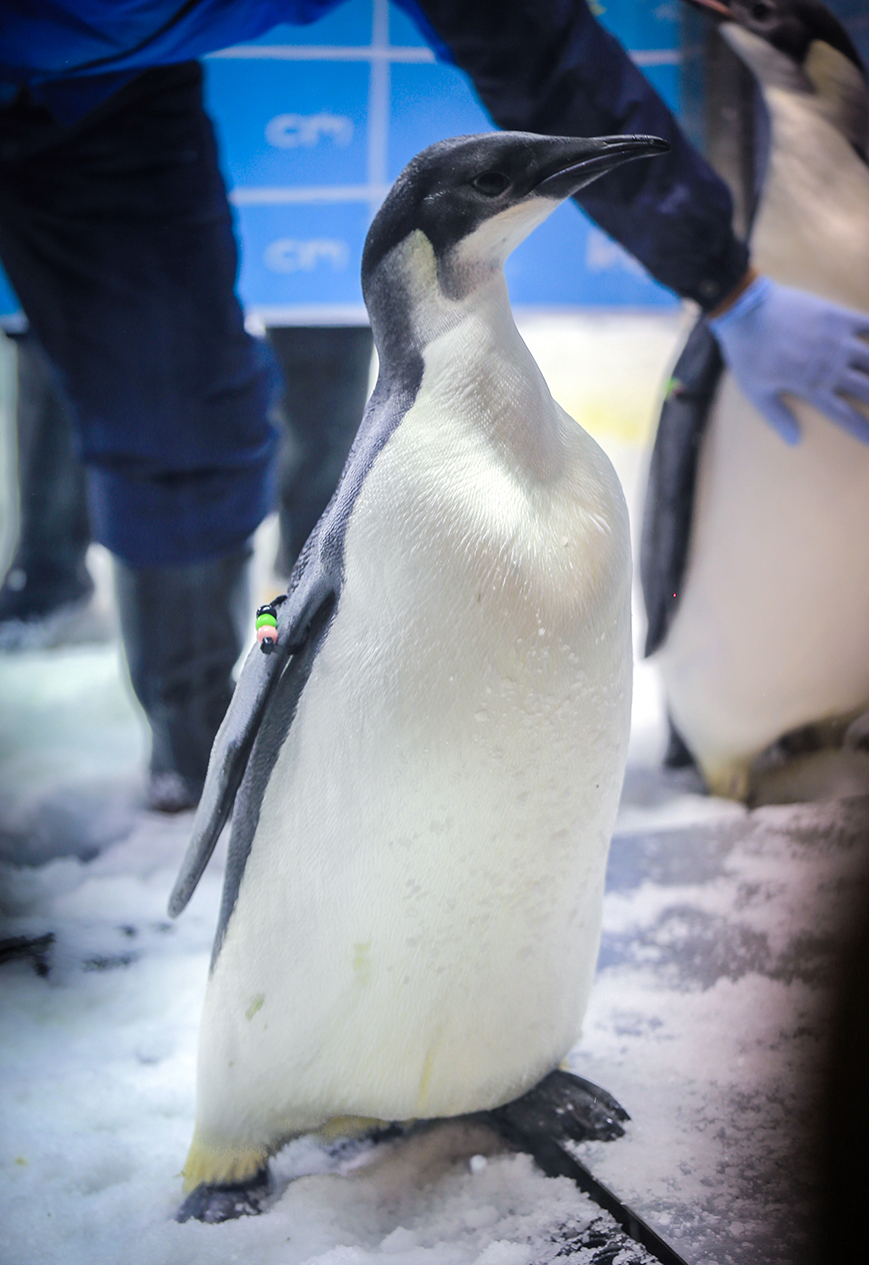 6月26日,記者在珠海長隆海洋王國企鵝館看到今年剛剛出生的帝企鵝寶寶,而去年出生的兩只帝企鵝也首度公開現場體檢,它們健壯的身姿和喜人的體檢結果,無疑是對海洋王國的動物保育實力,還有優質原生態動物環境的最大肯定。