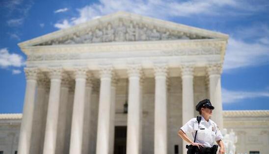 6月26日,在美國華盛頓,警察在最高法院門口執勤。美國最高法院26日部分解凍特朗普政府新版入境限制令,并表示將在今年10月正式審理该限制令是否合法一案。 新華社發(沈霆 攝)