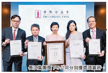 同時,長江集團旗下5家公司亦分別獲獎項嘉許,包括長江和記實業有限公司及香港電燈有限公司獲頒公益榮譽獎,長江實業地產有限公司獲頒公益卓越獎,以及長江基建集團有限公司及電能實業有限公司獲頒公益優異獎。