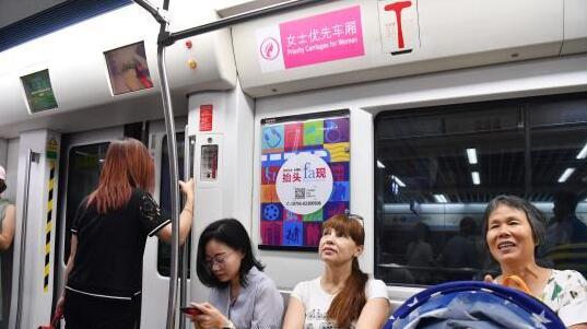 6月26日,深圳地鐵率先在1、3、4、5號線雙方向列車首、末節車廂進行女士優先車廂試點工作,深圳地鐵通過站內廣播、導向標識、車站告示等方式進行引導。中新社陳文 攝