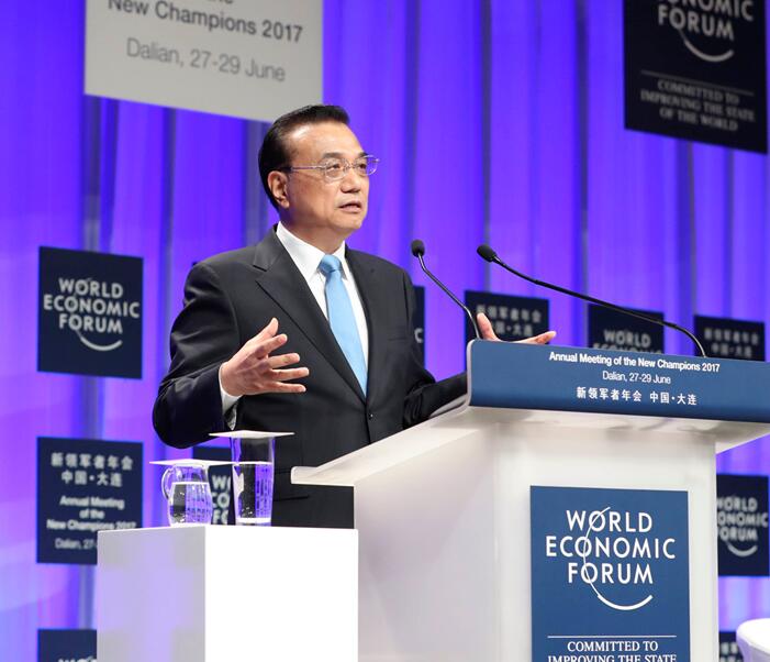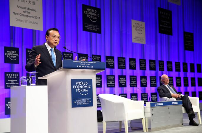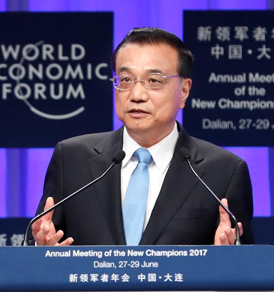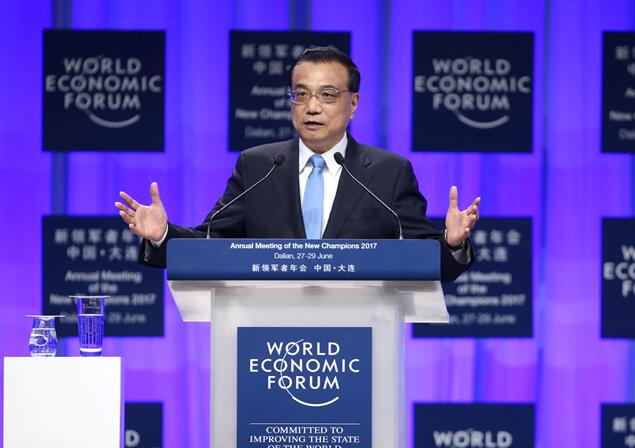 6月27日,李克強總理在大連國際會議中心出席2017年夏季達沃斯論壇開幕式并發表特別致辭。新華社