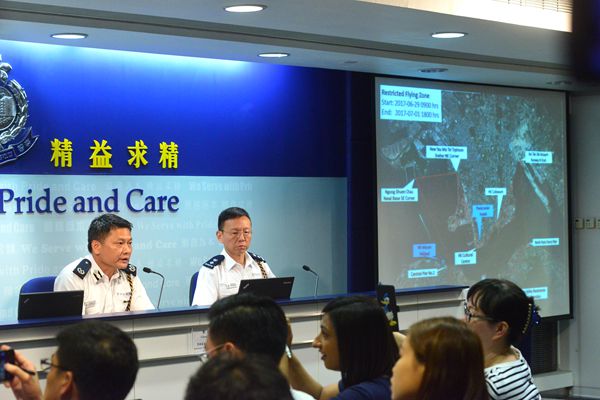 鄭耀武指,警方已向民航處在維港上空申請臨時禁飛區。由6月29日上午9時至7月1日的下午6時,任何航拍機或其他飛行物體,不能進入禁飛區。