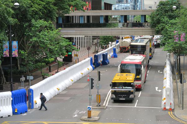灣仔會展一帶架設水馬陣。