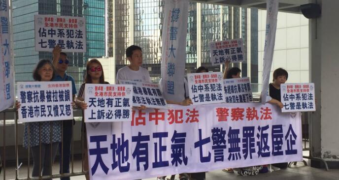 另外,「撐警大聯盟」和珍惜群組約20名代表,趁開庭前在高等法院正門外高叫口號,聲援被定罪的警員,他們認為警察依法辦事被拘捕是不合理。