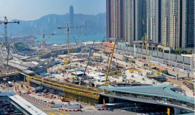 高鐵香港段將以專用隧道延伸至近落馬洲的邊界,連接高鐵內地段。圖為興建中的西九龍總站。