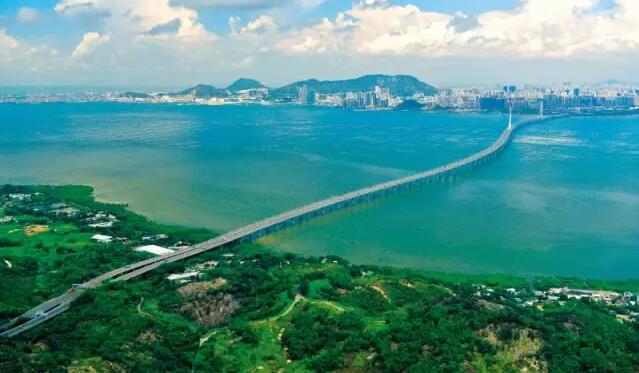 興建中的港珠澳大橋橫跨珠江口三地,全長50公里,連接大橋及海底隧道。