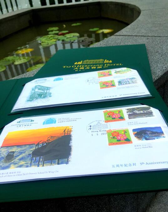 另外,酒店特別與香港郵政合作,推出5周年誌慶首日封系列,蒐集香港及海外藝術家筆下的大澳風情,包括中華基督教會大澳小學學生陶知、大澳本土畫家黃志泉、香港展能藝術會展能藝術家譚嘉儀、藝術家Irene Flanhardt、藝術家樊樂怡及來自羅馬尼亞的藝育菁英——香港國際青少年繪畫比賽2013/14的優秀青年畫家Tudor-Petru Moldoveanu。