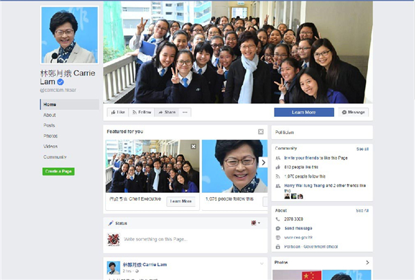 剛就任特首的林鄭月娥推出Facebook專頁及Instagram帳戶,並上載短片和照片。Facebook首段影片於早上約9時半發布,貼文提到林鄭在清晨5時半已約了髮型師,而在片段中可見林鄭月娥正在理髮和化妝。