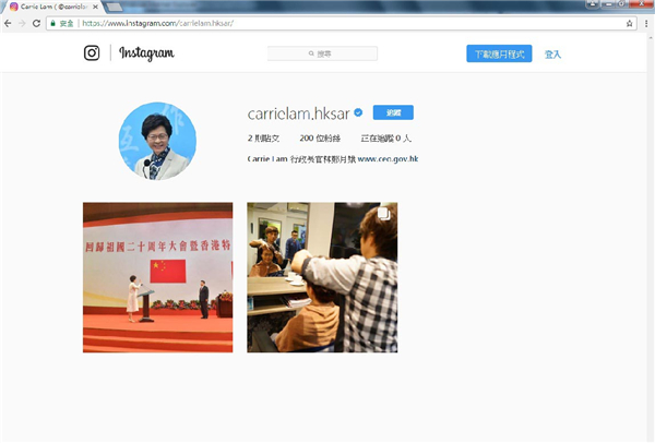 政府新聞處下午發稿,指林鄭月娥已推出Facebook專頁及Instagram帳戶,希望透過社交媒體加強與市民的聯繫和溝通,歡迎市民瀏覽Facebook專頁(www.facebook.com/carrielam.hksar)和Instagram帳戶(www.instagram.com/carrielam.hksar)。