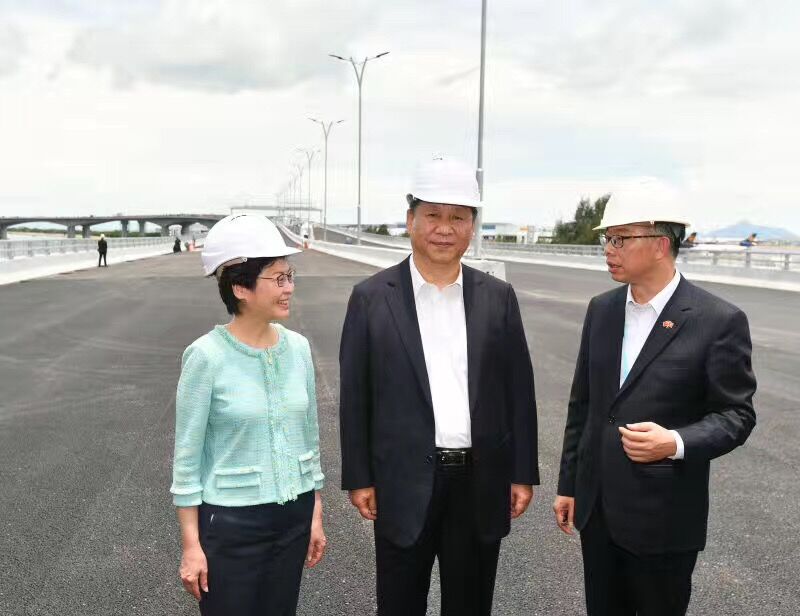 陪习近平主席视察港珠澳大桥及香港国际机场时,林郑则穿上了一件浅绿色的外套,加黑色西裤,应该是为了方便上落。