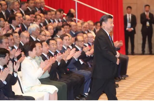 習近平與出席人士拍攝大合照,并發表講話。他先感謝各界人士為國家社會發展作出貢獻。他稱,“一國兩制”取得了舉世公認的成功,雖遇到了新情況、新問題、新挑戰,要理性分析,不能單一歸因。他認為,沒有比“一國兩制”更高明的制度,強調中央堅持“一國兩制”不走樣、不變型,決心堅定,與其坐而論道,不如起而行之。為了實現香港繁榮發展、保證和諧穩定,需要大家攜手并進,提出在四方面做好: