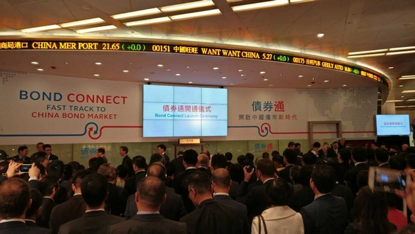 對于債券通開通的意義,港交所主席周松崗稱,債券通可以讓國外投資者投資全球最大的債券市場,進一步鞏固香港作為金融中心的地位,感謝中國外匯交易中心的支持和貢獻。