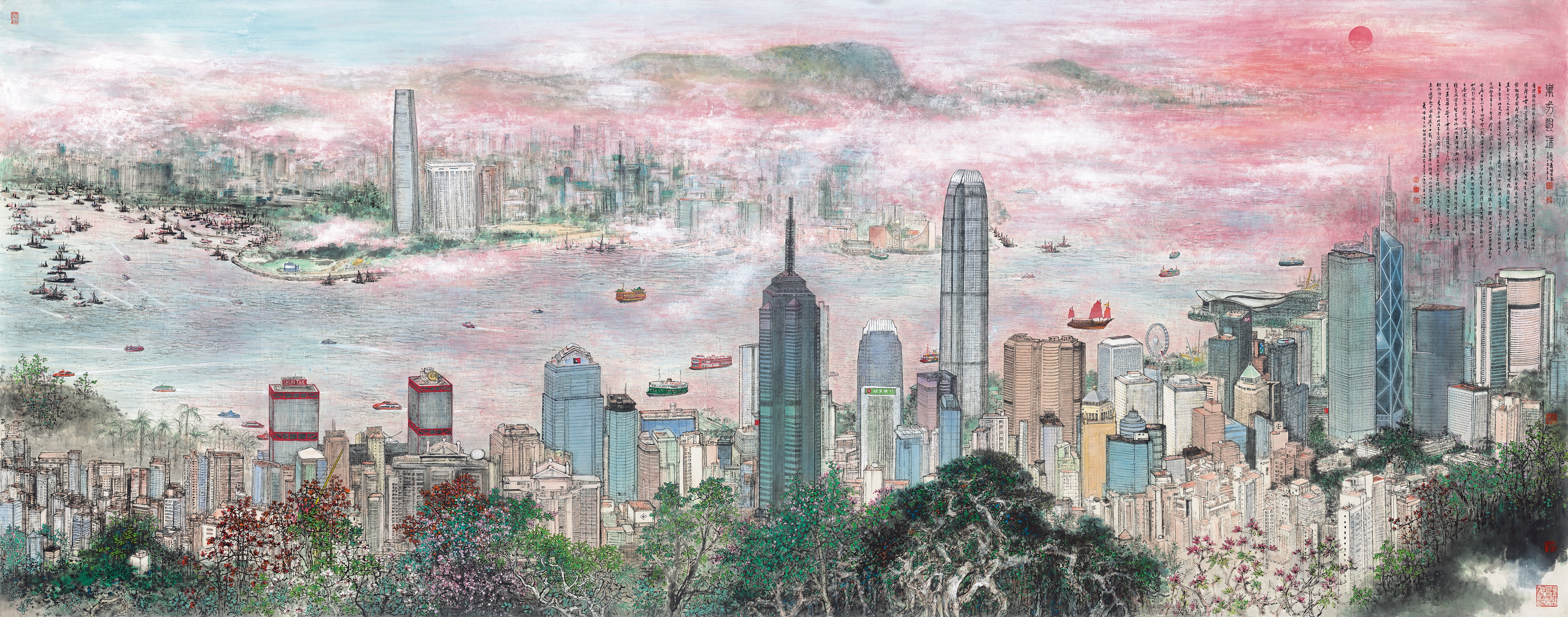 蕭暉榮作品,《東方明珠——日出東方》,中國畫,144x368cm。