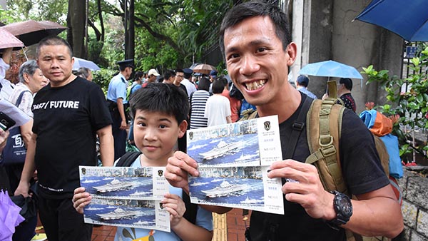 【香港商報訊】記者何加祺、潘仲男、實習記者葉柏希報道:中國航空母艦「遼寧號」在本月7日至11日停靠本港,參加香港回歸暨解放軍進駐香港20周年活動,期間將於本月8日及9日開放予公眾參觀,2000張入場門票昨日在中環軍營、槍會山軍營及石崗軍營向公眾派發,市民反應十分熱烈,過百名市民自前晚開始通宵排隊,人龍更長達數百米,更有人表示登上國家第一艘航空母艦參觀是其最大心願。