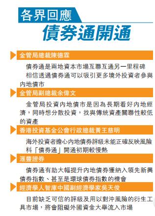 餘迪文解釋,債券通亦簡化了入市程序,境外投資者透過電子交易平台直接從內地報價,金管局營運的CMU在內地兩家中央託管機構開立帳戶提供結算服務,減少變更系統的成本。