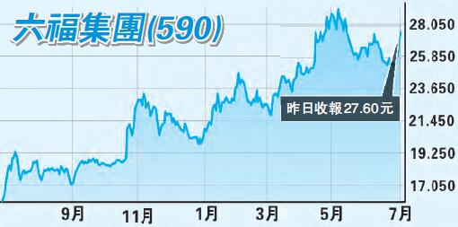六福在中港兩地的同店銷售將持續迎來復蘇,管理層早前預期,內地市場在2018財年首季的同店銷售將會錄得雙位數增長,2018至2019財年則維持增長7%。隨公司的同店銷售復蘇、國內店舖擴張及香港的租金下跌,相信六福將會有可持續的增長前景。該股昨天收市27.6元,升3%,升穿多條平均線,料短線升勢持續。