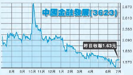 大灣區概念股值得留意,其中一隻在廣東佛山起家的集成金融(3623)7月3日公布,由「中國集成金融集團控股」改名為「中國金融發展控股」,於聯交所股份簡稱由今日(5)上午9時起由集成金融改為「中國金融發展」。英文股份簡稱仍為C Success Fin。同時,推出全新網站www.chinasuccessfinance.com。