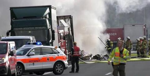 德國警方在一份聲明里說:“30名乘客已經被送入醫院治療,其中一些人傷勢嚴重。(旅游巴士上的)其余人員據信已經身亡。”