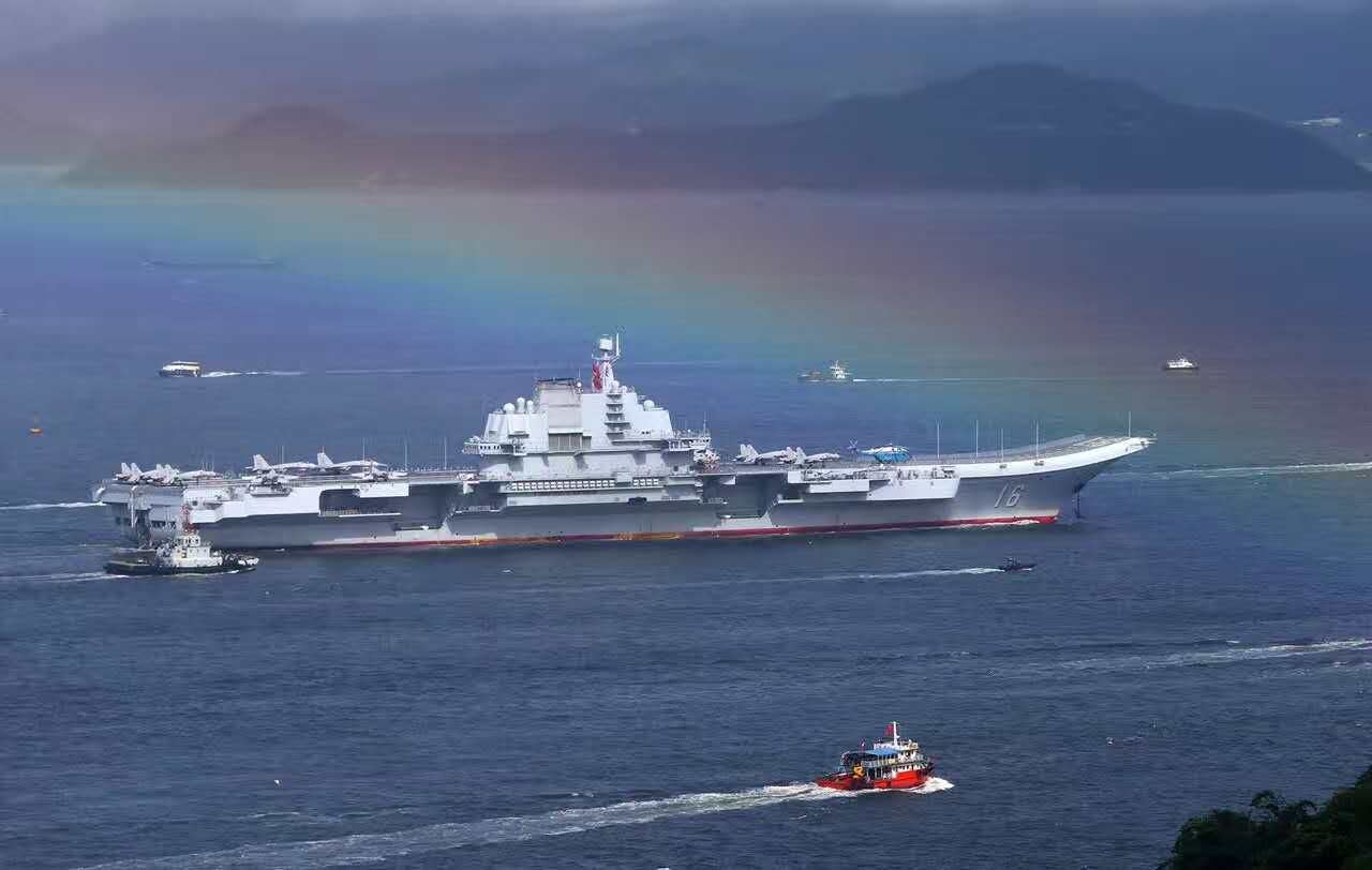 带着七彩祥云入港的遼寧艦。中国日報記者邓永安攝