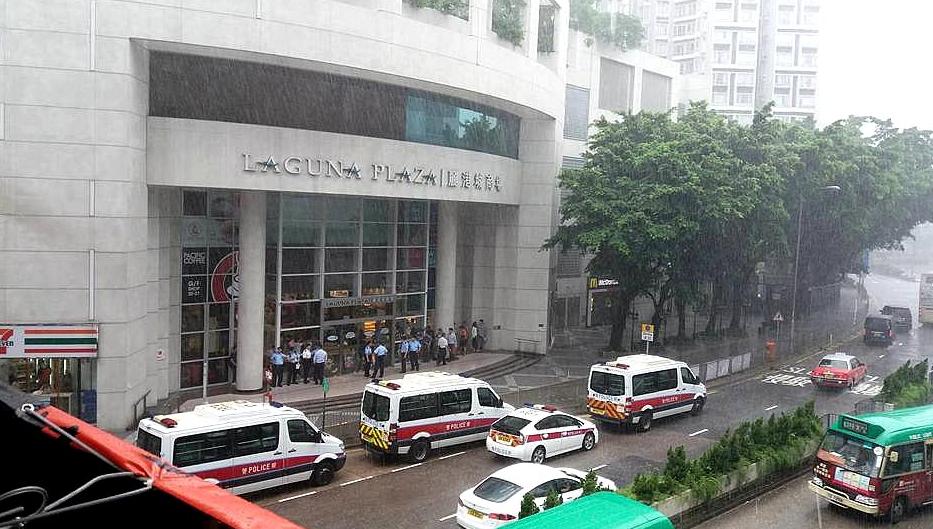 警方派出大批警员掩至藍田麗港城商場搜捕。网上图片