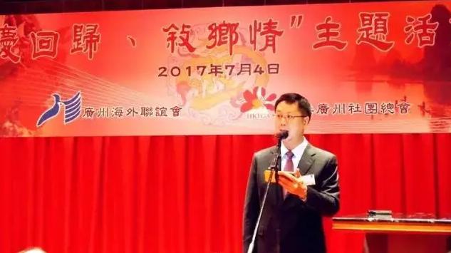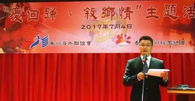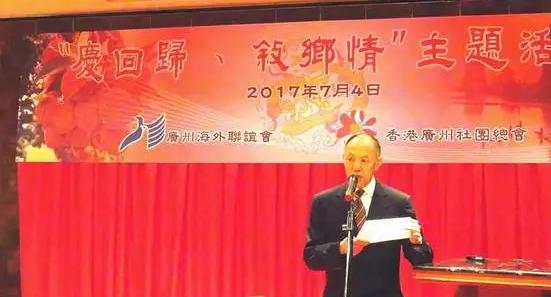 7月4日,廣州海外聯誼會、香港廣州社團總會聯合在香港舉辦“慶回歸、敘鄉情”主題活動暨“青年創新創業”沙龍。全國人大代表、香港廣州社團總會會長霍震寰,中央政府駐港聯絡辦新界工作部部長劉林,廣州市委統戰部副部長、廣州海外聯誼會常務副會長曾衛東,廣州市科技創新委員會黨組書記弓鴻午,廣州市婦聯主席劉梅,廣州市僑聯主席梁瑞冰,香港廣州社團總會名譽會長傅金珠、陳偉能,廣州市政協常委、香港廣州社團總會主席黃俊康等有關領導和香港知名人士出席,穗港各界嘉賓共300多人參加活動。