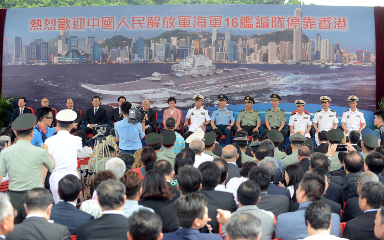 昨日,中國人民解放軍海軍辽宁艦編隊停靠香港,歡迎儀式在昂船洲舉行。