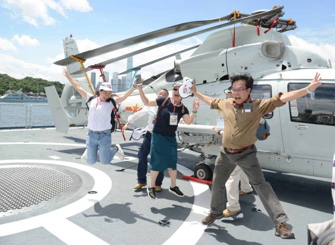 他又說,以往只能從電視中看到航母,而今可以親睹,真是機會難得。有內地游客特地到港看「遼寧號」,稱在內地未必看到航母,故得悉航母來港便專程到來。他又認為中國強大起來,希望日后國家能多建航母。