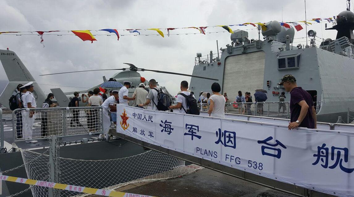 場內最受歡迎是停泊在軍營的三艘「遼寧艦」編隊艦艇:導彈驅逐艦「銀川艦」、「濟南艦」和導彈護衛艦「煙台艦」,市民即使撐傘和花上最少半個小時等候,也無阻他們登上艦艇參觀和拍照留念的興致。