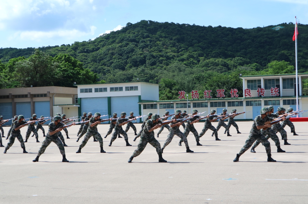 駐軍部隊兵員長半小時的大型演練吸引大批市民於操場邊圍觀,所有人均在進行升旗儀式時肅立,并全神貫注地凝視五星紅旗升起。「打頭陣」的軍樂隊進行3首樂曲演練,緊隨其后的是「刺殺操」,近百士兵展示刺、打、撞等動作,在場人士都「拍爛手掌」以示鼓勵。
